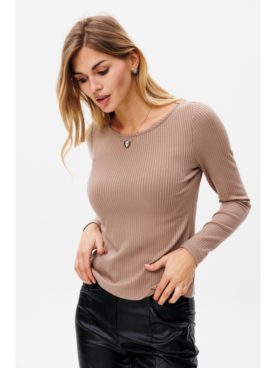 Джемпер женский полуприлегающего силуэта из трикотажной ткани. Рукав втачной, одношовный. Вырез горловины ""лодочка"".