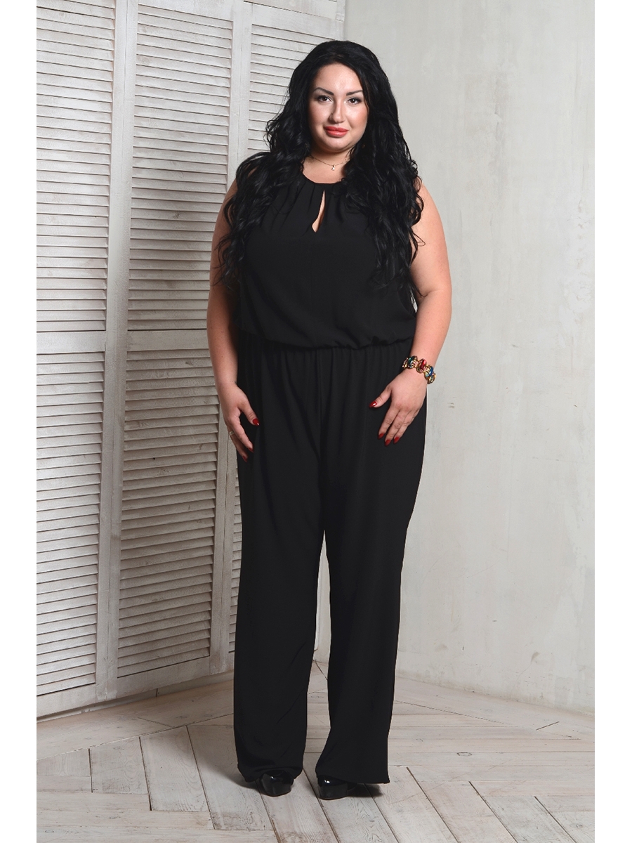 Шикарный комбинезон свободного кроя с напуском. Вырез горловины оформлен мягкими складками, по центру переда вырез-щель. Спинка с запахом, облегчающая одевание, в верхней части завязывающийся на 2 шнурочка. Черный цвет — это идеал. Вы можете его носить и днем, и вечером. Он всегда к лицу... Он всегда сексуален.