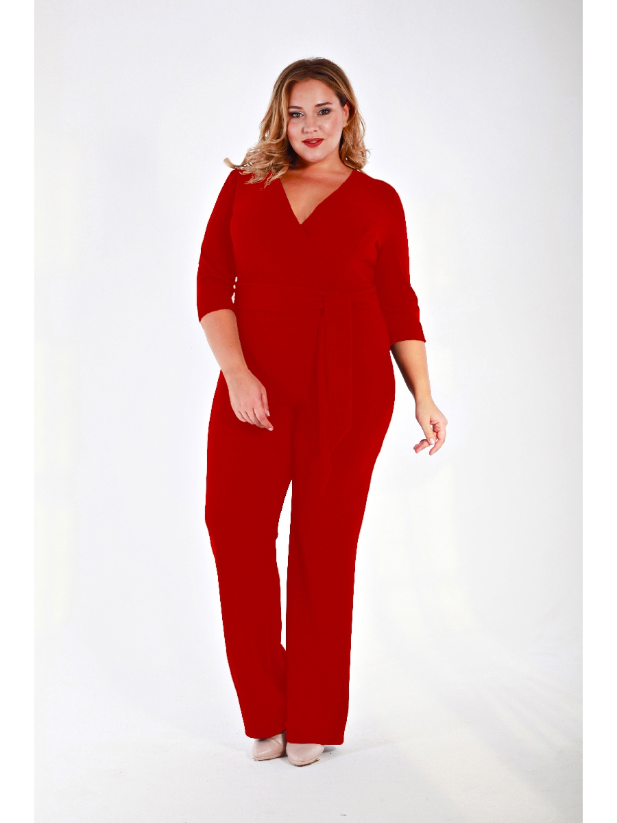 Комбинезон из крепа с эластаном прилегающего силуэта. Верхняя часть переда с запАхом, отрезной под грудью. Брюки прямые. Завязывается на пояс.