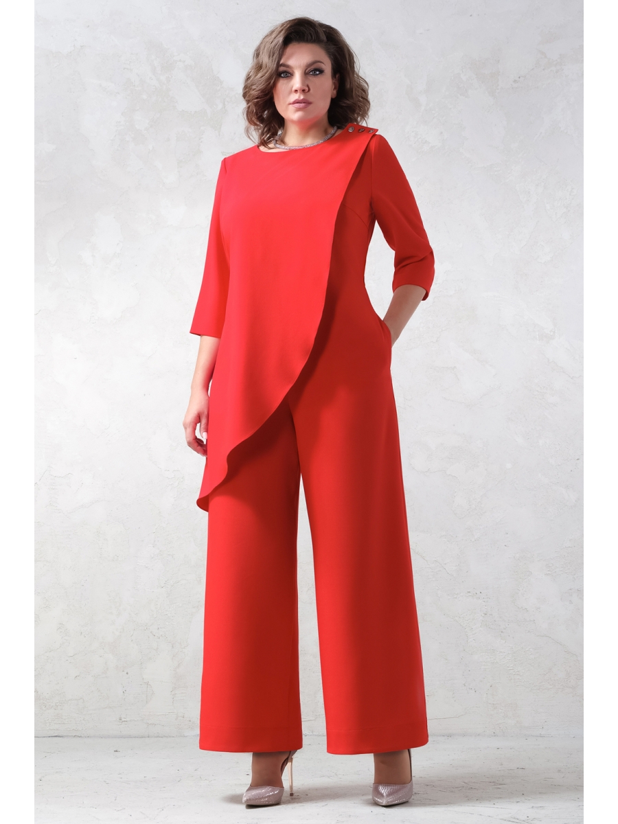 Оформить заказ →Нарядный комбинезон из костюмно-плательной ткани средней плотности, немного тянется. Застежка на потайную молнию спереди. По спинке на талии резинка. На переде отлетная деталь, имитирующая запах.