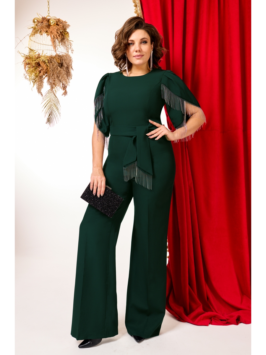 Стильный и невероятно роскошный комбинезон, выполнен из высококачественной плательной ткани с добавлением вискозы. Комбинезон отрезной по линии талии, по спинке в среднем шве центральная застежка на потайную молнию. Рукав втачной, со складками, по низу декорирован стильной дизайнерской тесьмой, что придает модели особый шарм и нарядность. В комплект входит съемный широкий пояс, декорированный дизайнерской тесьмой. Комбинезон прекрасно подойдет для торжественного мероприятия, а также для деловой встречи. Модель удобная и практичная, вы будете в нем выглядеть неотразимо.