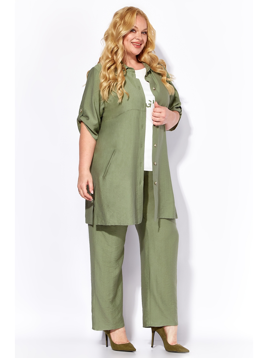 Комплект женский трехпредметный создан специально для самых шикарных модниц 2025 года! Этот комплект - идеальный выбор для женщин, которые ценят комфорт, качество и стиль. За счет идеального свободного кроя в стиле оверсайз, Вы подчеркнете все свои достоинства и скроете недостатки. Стильный и элегантный дизайн этого костюма, свежий цвет привлекут внимание окружающих. Легкие материалы и прекрасная воздухопроницаемость делают молодежный костюм идеальным для жаркого лета, теплой весны и осени и позволяют коже дышать. Комплект включает в себя: стильные широкие брюки с высокой посадкой на резинке, топ-футболку с печатью и коротким втачным рукавом, и рубашку удлиненного прямого кроя с прорезными карманами на полочке и разрезами по боковым швам. Оригинальная современная тройка подарит комфорт женщинам и девушкам всех возрастов и подойдет на любой случай, как для повседневной  жизни, так и на  торжество.