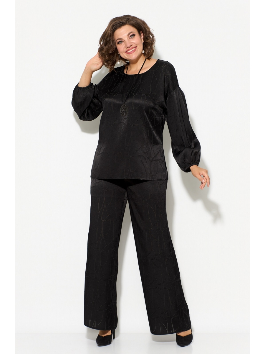 Нарядный женский 2-х предметный комплект из костюмно-плательной ткани средней плотности с рисунком в тон.