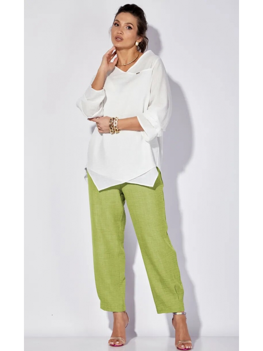 Брючный костюм 1101.1 белый/фисташковый, Anastasia – купить с доставкой в Нижнем Новгороде на nizhny-novgorod.belpodium.ru