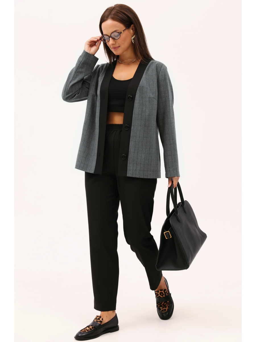 Деловой брючный комплект состоит из прямого жакета и зауженных брюк.