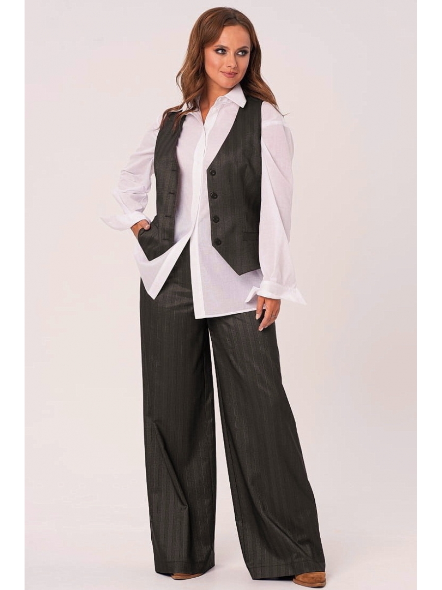 Классический брючный комплект-тройка состоит из жилетки, белой хлопковой рубашки и широких брюк.