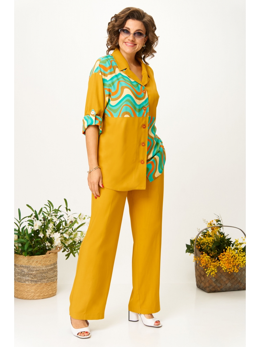 Брючный костюм 1215 горчица, Anastasia – купить с доставкой в Нижнем Новгороде на nizhny-novgorod.belpodium.ru
