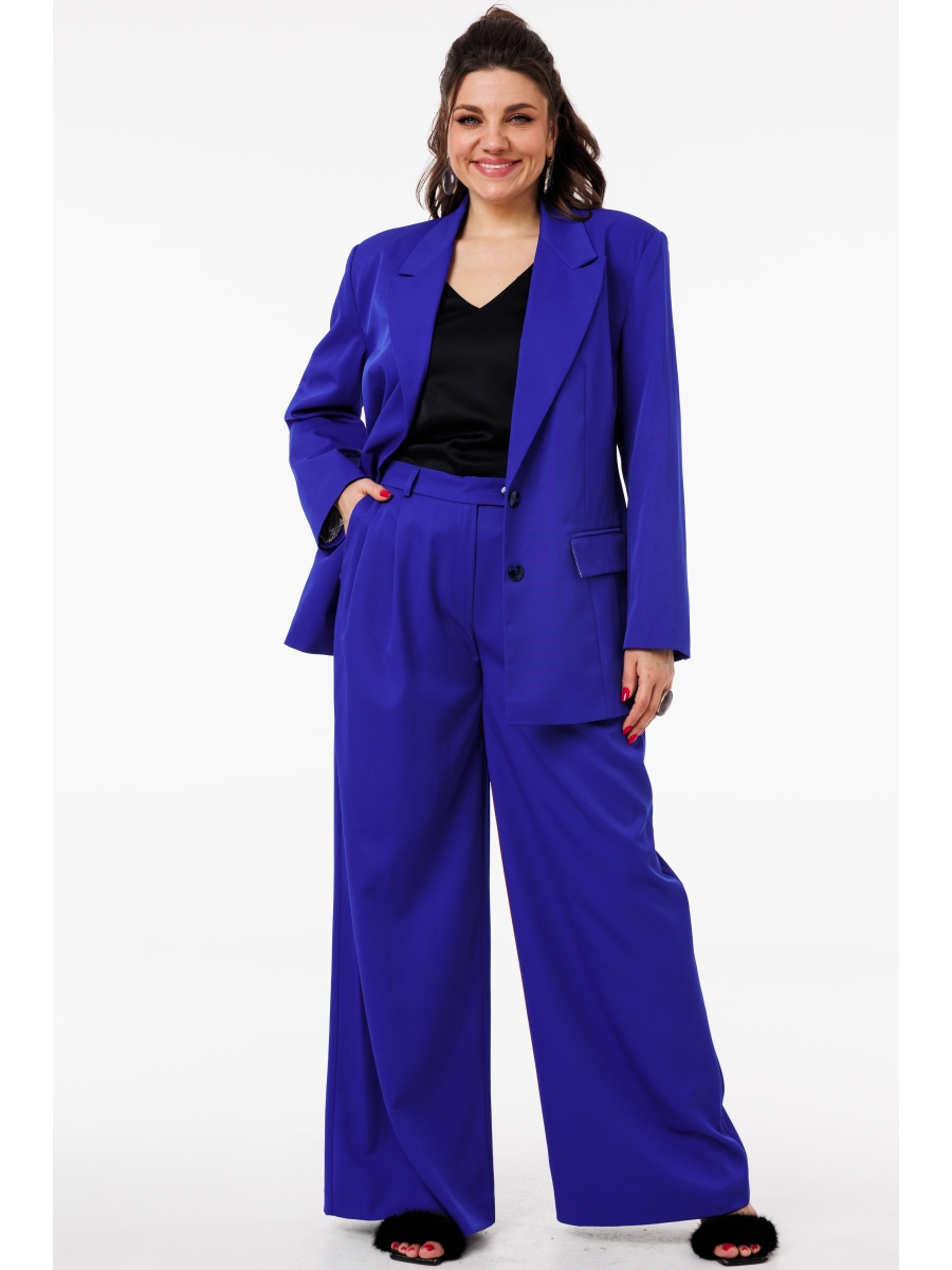 Такой костюм от Анелли можно носить как вместе, создавая цельный образ, так и по отдельности, комбинируя жакет или брюки с другими элементами гардероба. Это делает его универсальным и практичным решением для различных ситуаций.