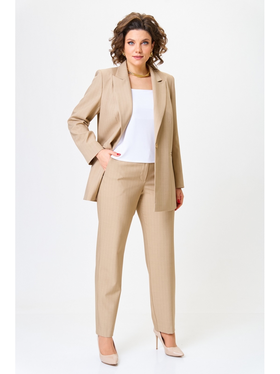 Нарядный брючный костюм из костюмной ткани в полоску.
