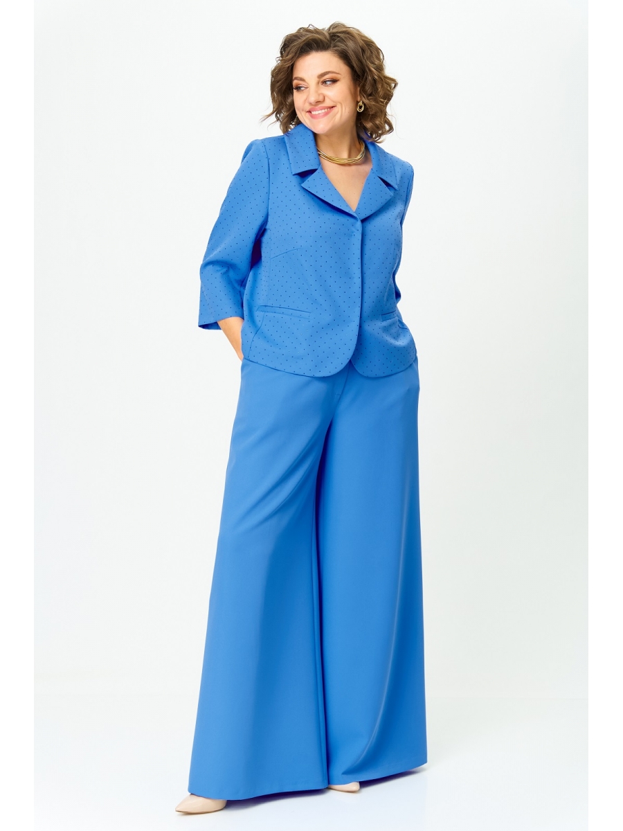 Нарядный брючный женский комплект из костюмной ткани со стразами.