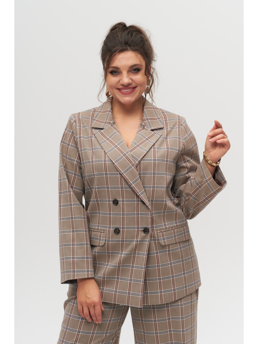 Жакет женский оверсайз, длина до середины бедра. Рукав втачной, длинный. По переду прорезные карманы с клапаном. Классический жакетный воротник с отложным лацканом. Жакет на подкладке.