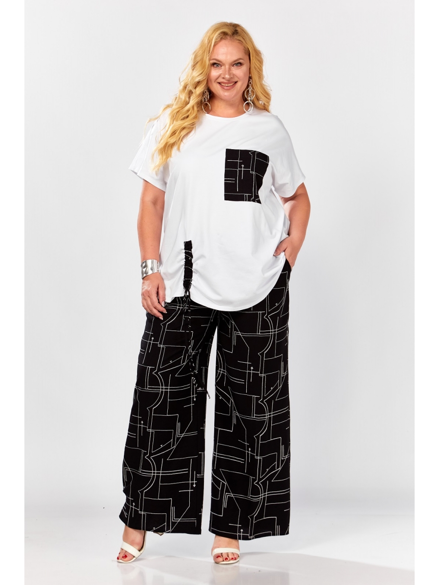 Комфортный летний брючный комплект, состоящий трикотажной вискозной блузы и брюк из мягкой легкой ткани.