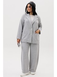 Жакет со спущенным плечом. Воротник пиджачного типа, по полочке идут накладные карманы. Жакет без подкладки, мягкий и легкий. Края борта воротника, низов и карманов не обработаны. Застежка на петли и пуговицы. Выполнен в крое Oversize свободной формы и посадкой по фигуре. Если хотите силуэтную посадку, выбирайте на размер меньше. Если хотите посадку свободнее - заказывайте свой размер.