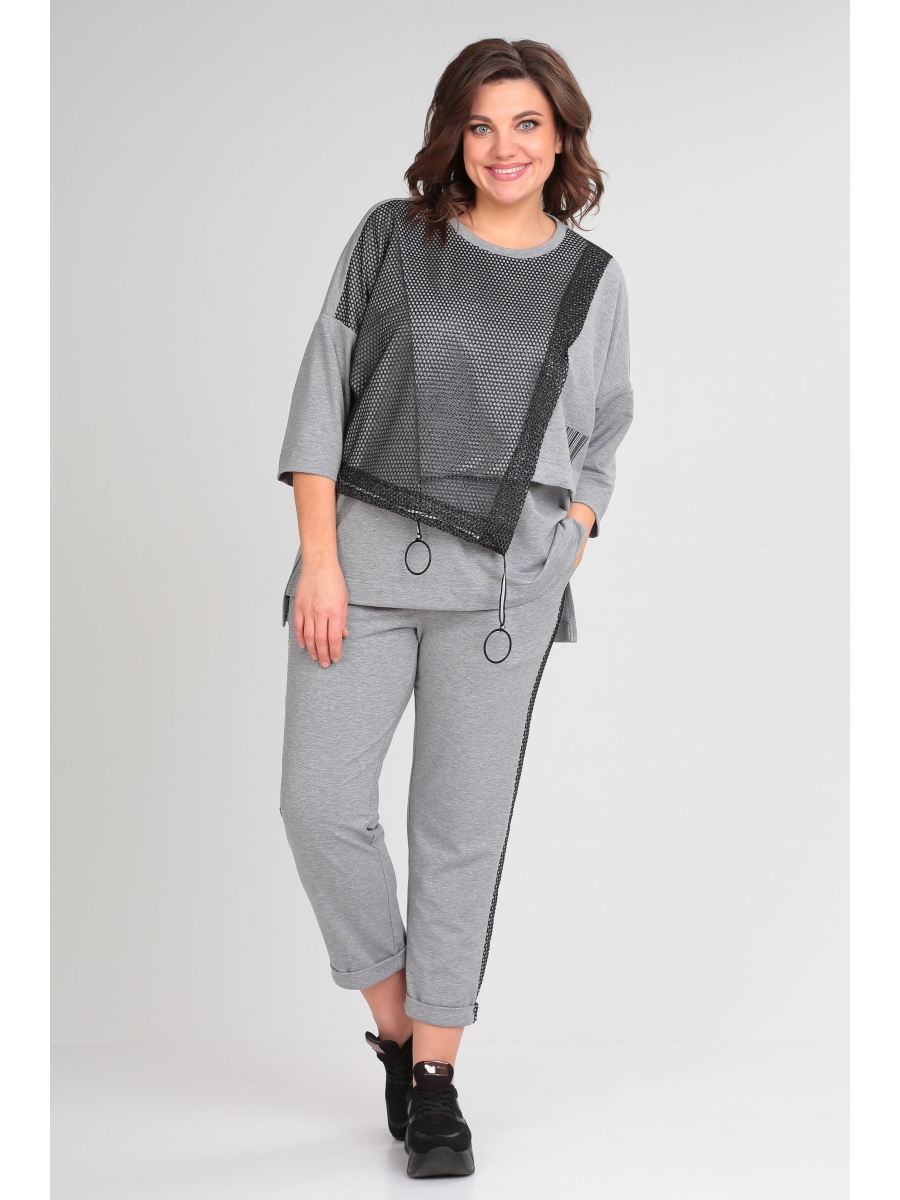 Удобный костюм выполнен из мягкого и уютного трикотажа. Брюки укороченные, свободного кроя с отворотом, будут прекрасно смотреться как на высоких, так и на миниатюрных девушках. В брюках функциональные боковые карманы, пояс на резинке, украшены крупной сеткой на лампасах. Джемпер свободного кроя, плечо приспущено, рукав ¾, украшен принтом в виде «штрихкода». Перед короче относительно спинки, по бокам разрезы, украшением служат отлетные детали со стяжками на крупных кольцах по низу. Сложный крой и функциональность костюма делает его особенным и самостоятельным. Оба изделия можно смело комбинировать с другими вещами и обувью Вашего гардероба. Изделие подойдет на рост 170 см.