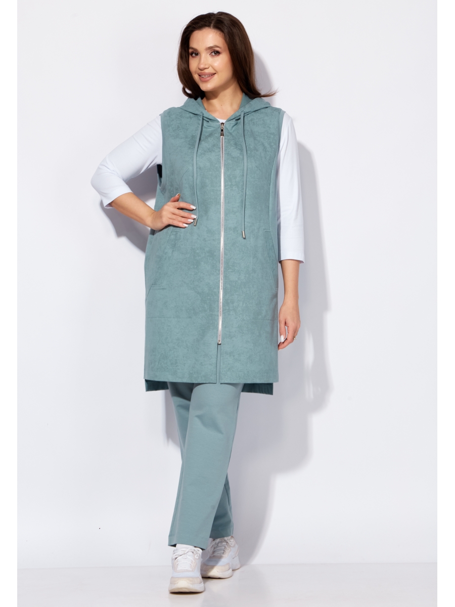 Комплект женский, 3-х предметный, состоящий из жилета, брюк и футболки.