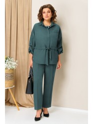 Жакет на потайной застежке, с пришивной кулисой и поясом, прямые классические брюки и блуза- универсальный комплект для различных вариантов носки. Элегантный рукав с патой на цельнокроеной основе.