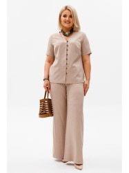 Блуза украшена красивой россыпью пуговиц, придающих ей изысканный вид. Цвета костюма подобраны таким образом, чтобы создать гармоничное сочетание и подчеркнуть вашу индивидуальность.