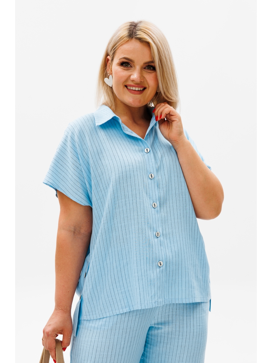 Воплощение стиля и комфорта: льняной костюм с брюками и рубашкой с коротким рукавом от Анелли!