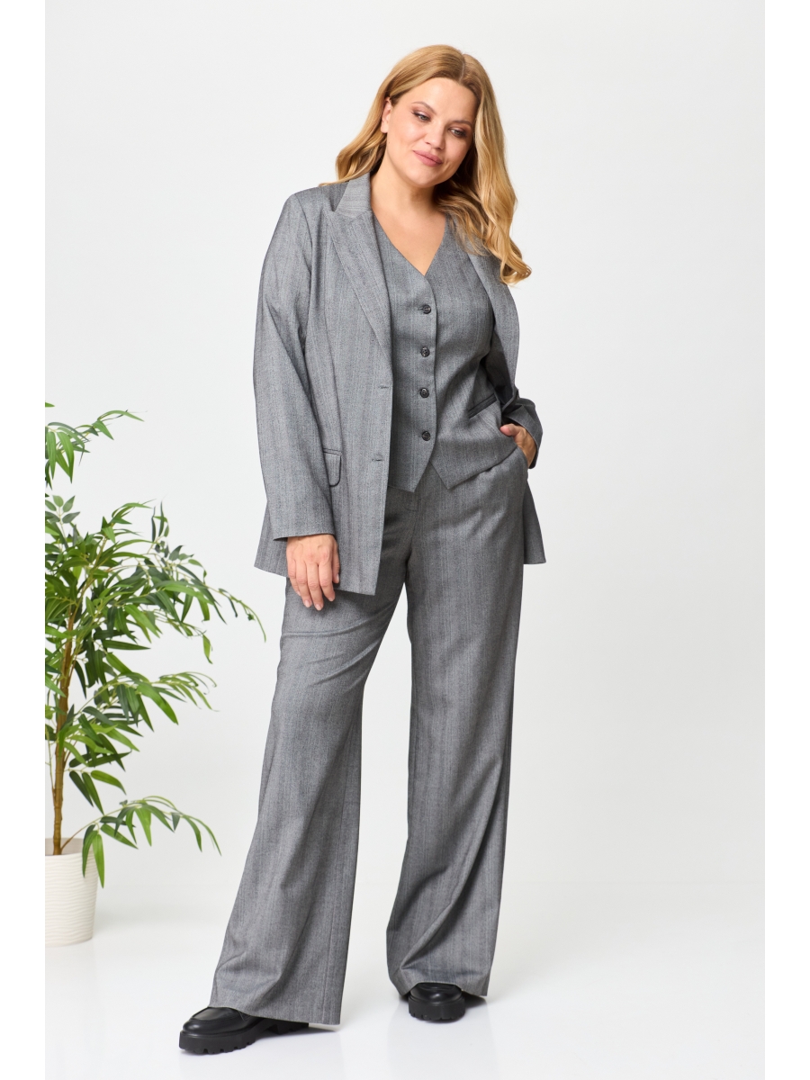 Этот костюм - это шик и универсальность. Жакет бойфренда сочетает в себе элегантность и комфорт, прямые брюки придают вам стройность и уверенность, а жилет завершает образ, добавляя нотку роскоши. Все это - актуальная классика, которая никогда не выйдет из моды.