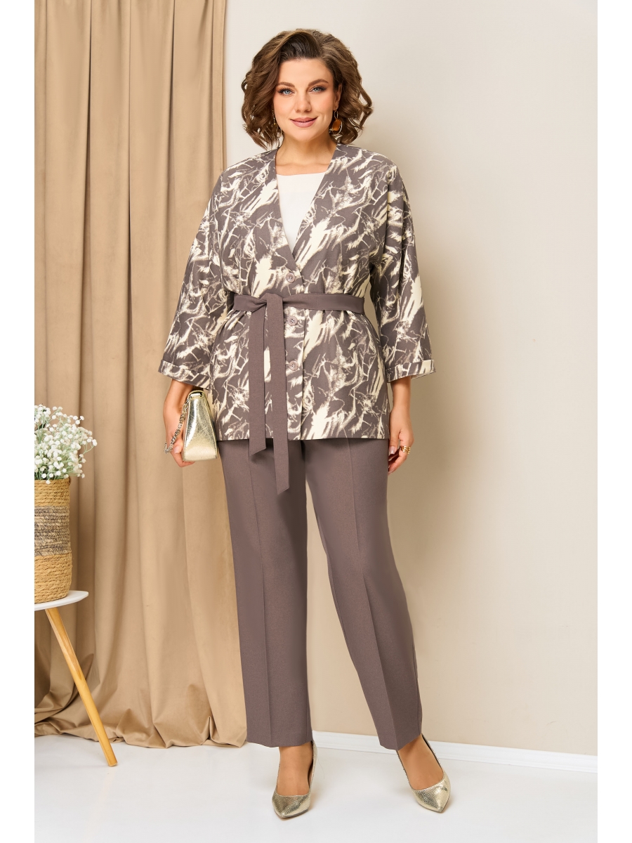 Жакет из текстиля с рисунком, с V-образной горловиной, прямого силуэта, без подкладки, с застежкой на пуговицы. Рукава жакета - на цельнокроеной основе.