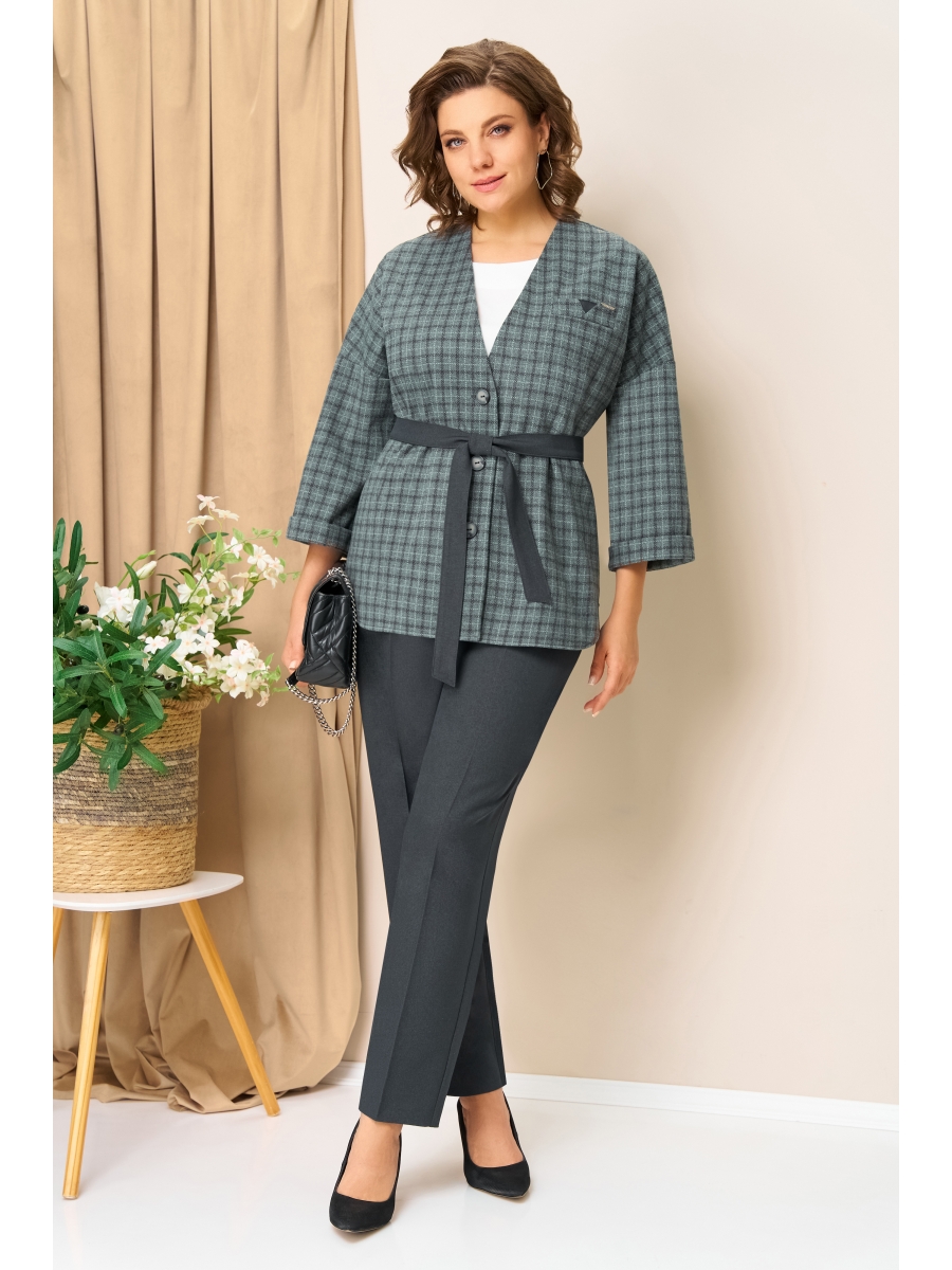 Жакет из трикотажа с V-образной горловиной прямого силуэта без подкладки, с застежкой на пуговицы и округлыми вырезами по низу. Элегантный рукав на цельнокроеной основе.