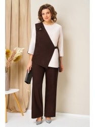 Центральный элемент образа - оригинальный жилет слегка приталенного силуэта. Изнутри жилет на круговой подкладке. Съемная брошь-лилия делает комплект еще более нарядным, при этом создает различные варианты для носки.