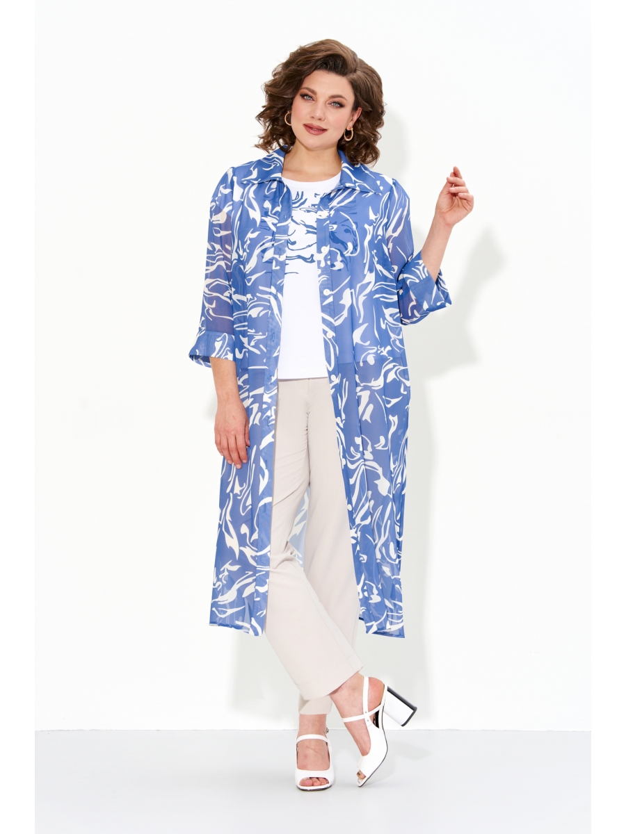 Костюм женский с брюками, футболкой и удлиненной рубашкой из шифона.