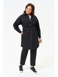Рубашка удлиненная свободного силуэта с функциональными накладными карманами по переду и в боковых швах, рукава со спущенной линией плеча с манжетами, воротник рубашечный, застежка-планка на петли и пуговицы.