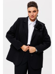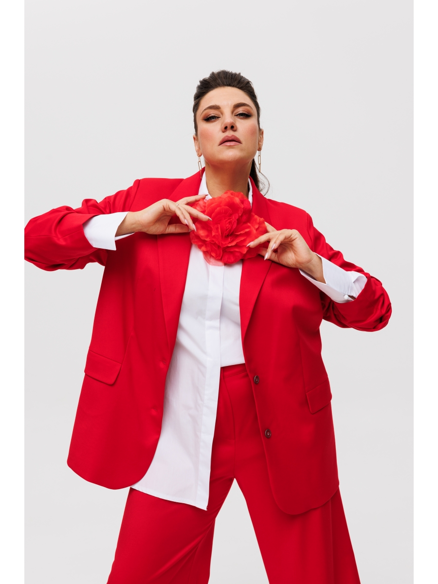 Брюки палаццо на резинке с карманами создают эффектный силуэт и придают образу легкость и грацию. Однобортный оверсайз жакет добавляет современную нотку и непринужденность, делая костюм идеальным выбором для любых случаев — от деловых встреч до вечерних прогулок.