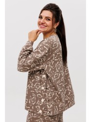Свитшот с втачным рукавом дополняет комплект, а функциональные кнопки по бокам не только украшают изделие, но и позволяют регулировать его силуэт по своему желанию.