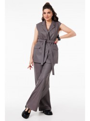 Облекая фигуру в идеальную посадку, костюм дарит непревзойденное ощущение комфорта и свободы. Брюки, мягко ниспадающие изящными складками, обнимают талию благодаря эластичному поясу, создавая безупречный силуэт, который подчеркивает вашу естественную элегантность. Жилет, с его четкими линиями и структурным силуэтом, скрывает дерзкую деталь — яркую подкладку, которая становится вашим маленьким секретом и вспышкой индивидуальности.