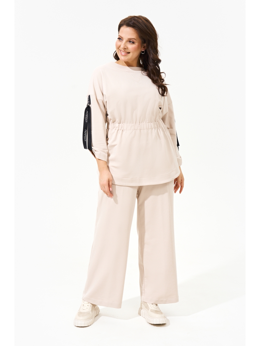 Костюм женский полуприлегающего силуэта выполнен из футера двухнитки класса пенье и состоит из джемпера и брюк.