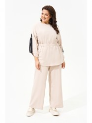 Джемпер с фактурной резинкой по линии талии; вырез горловины округлой формы; рукава со спущенной линией плеча и внутренней декоративной лентой (стильная деталь с изысканным акцентом), что позволяет регулировать высоту рукава; по спинке функциональная молния.