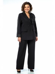 Жакет прямого, свободного силуэта, с двубортной застёжкой на петли и пуговицы и с в внутренней застёжкой на петлю и пуговицу, перед и спинка на подкладке, по левой стороне декорирован съёмной оборкой пристёгивающаяся под лацканом на пришивные кнопки. Перед с прорезными карманами с листочкой и клапаном. Рукава втачные, двухшовные, длинные, понизу с разрезом в локтевом шве и притачными манжетами застёгивающиеся на навесную петлю и пуговицу. Воротник пиджачного типа.