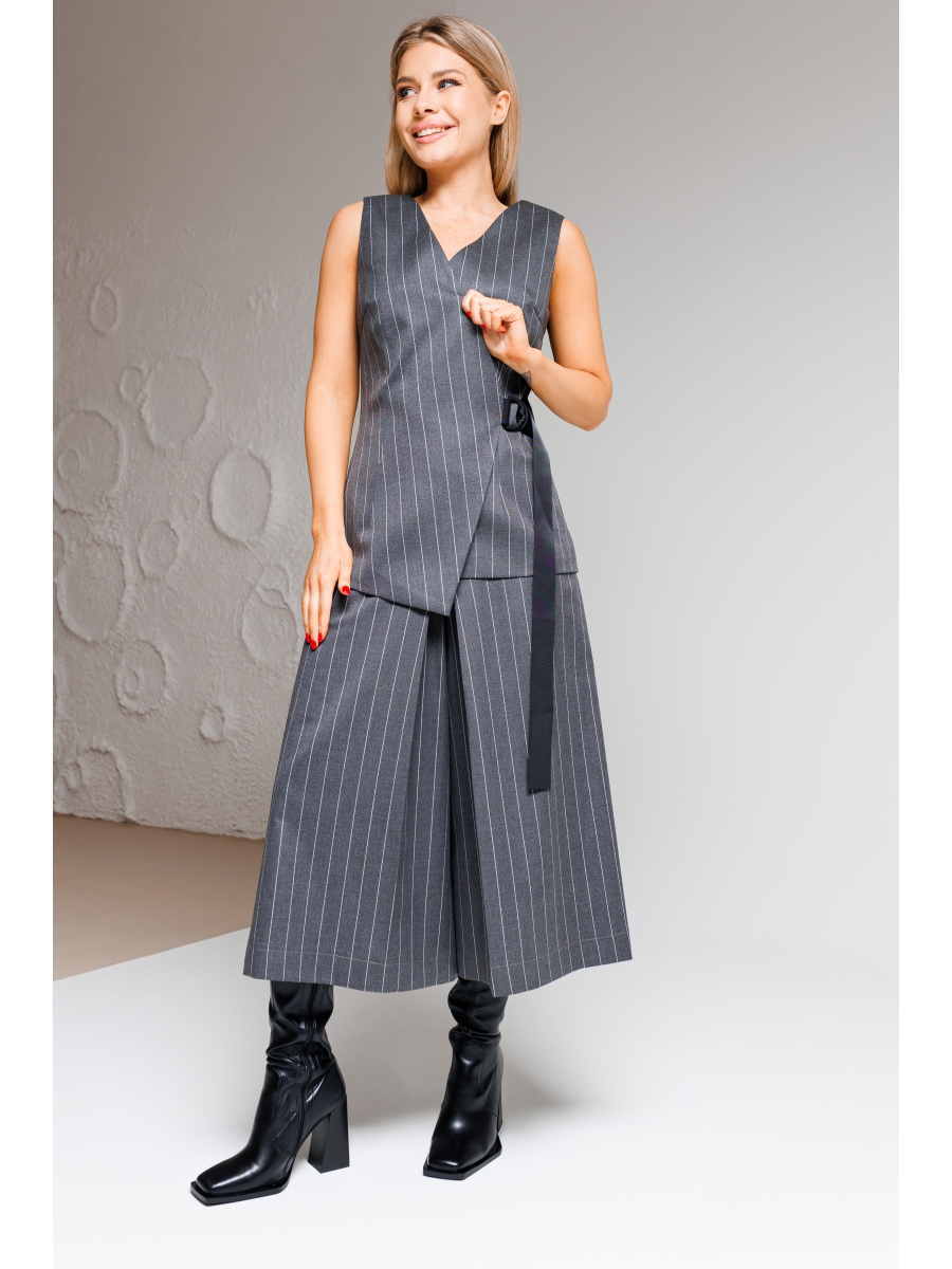 Костюм двухпредметный сосоящий из элегантного женского жилета, полуприлегающего силуэта с застежкой на декоративную тесьму, полукольцо и потайную пуговицу. Жилет на подкладке.