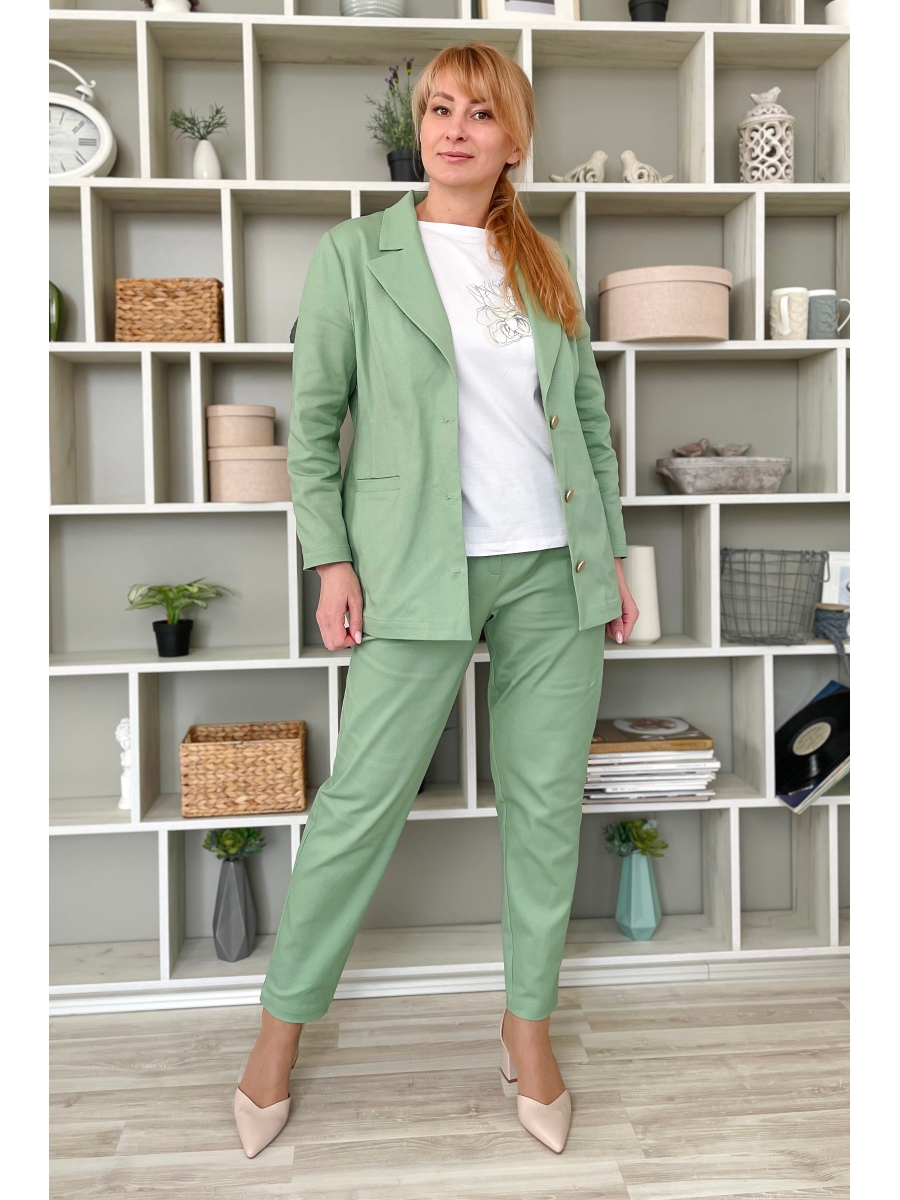 Промеры на примере 48 размера: ОГ-104, ОТ-98, ОБ-112, длина жакета по спинке 73 ± 1 см, Длина рукава: 59 ± 1 см.