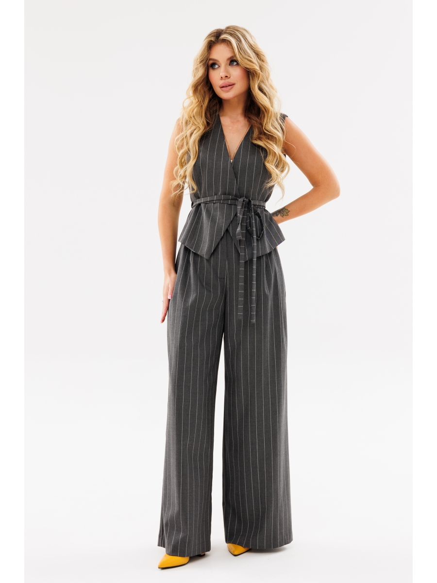 Брючный костюм артикул: 2081 полоска серый от AmberaStyle - вид 1