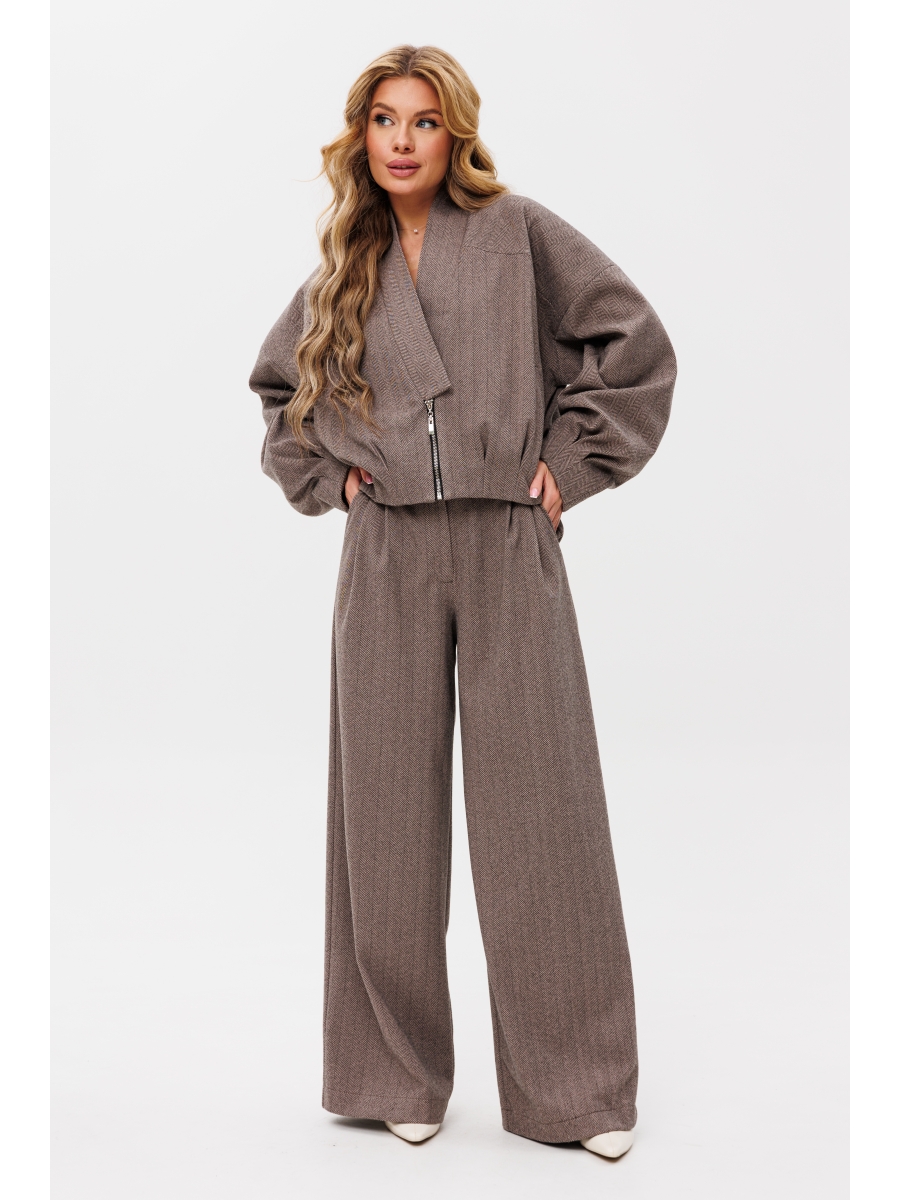 Жакет-Бомбер "ОВЕРСАЙЗ" со спущенным плечом, воздушным рукавом, по низу рукава бантовые складки. По переду завтежка на молнию, воротник "шаль". Перед жакета на кокетке, по низу заложены складки. Спинка на кокетке, по низу резинка.