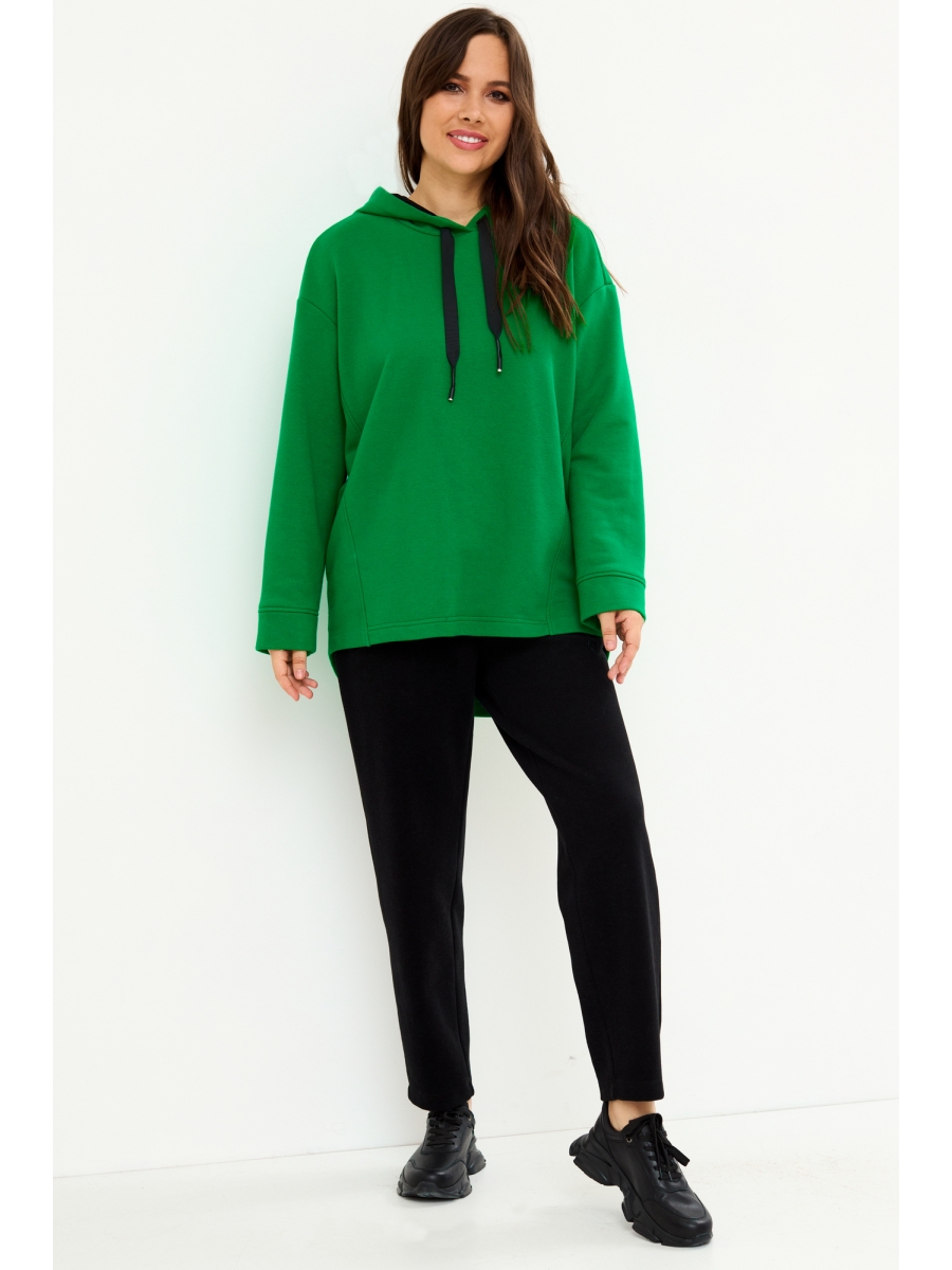 Оформить заказ →Стильный комплект, состоящий из толстовки и брюк. Выполнен из плотного однотонного трикотажного полотна (3-х нитка без флиса). Джемпер прямого силуэта, покроя оверсайз. Плечевой шов спущен. Горловина округлой формы, обработана капюшоном. Низ рукава и джемпера на манжете. Брюки прямого кроя, слегка заужены к низу, на притачном поясе с эластичной тесьмой, дополнены боковыми карманами.
