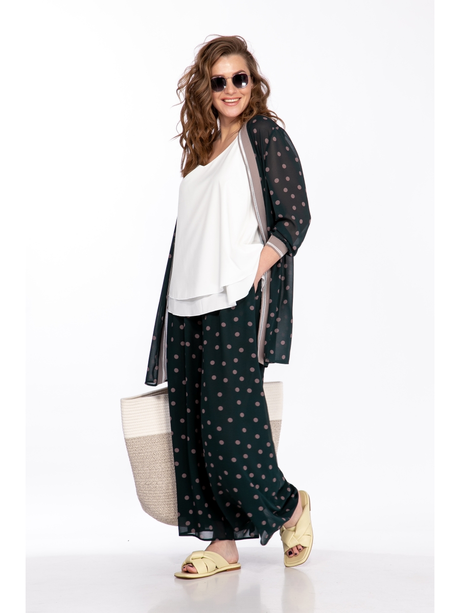 Комплект женский трехпредметный, состоит из кардигана, блузона и кюлот. Кардиган без застежки, рукав втачной 3/4 с притачным довязом.