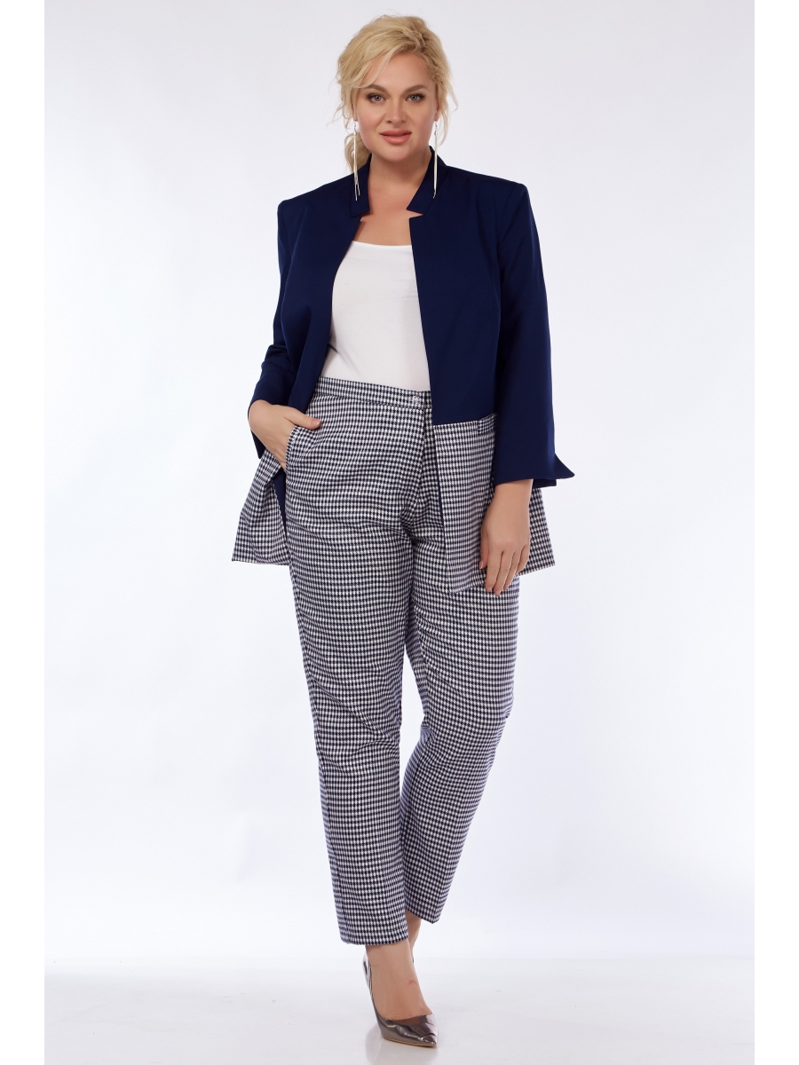 Оформить заказ →Костюм женский двухпредметный,состоит из жакета и брюк. Жакет полуприлегающего силуэта, на подкладке. Полочка и спинка с декоративным подрезом , двухцветный. На нижней части полочки обработан карман листочка, рукав втачной 3/4 с разрезом по локтевому шву, застежка на крючок. Брюки полуприлегающего силуэта,с карманом в боковом шве,с высокой посадкой,застежка на молнию и пуговицу.