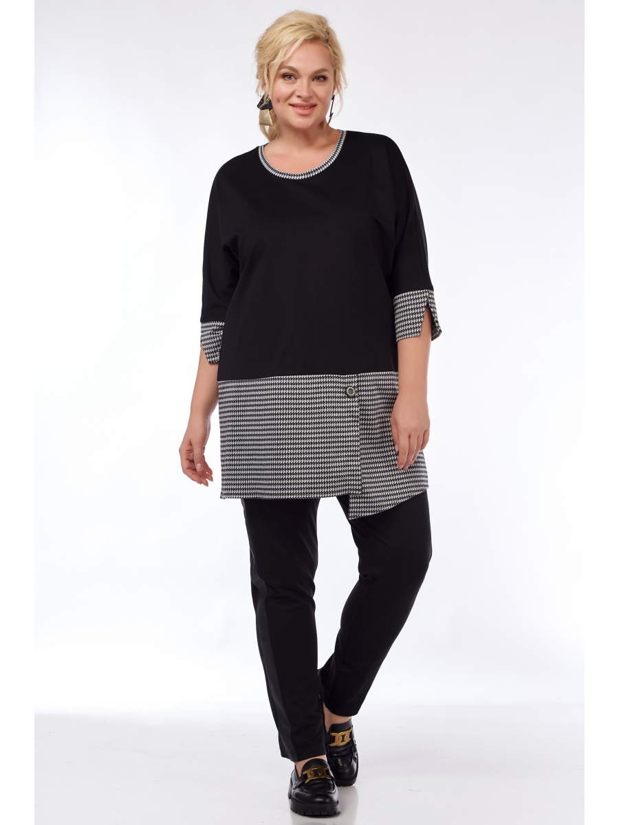Оформить заказ →Костюм женский свободного силуэта, спорт.Состоит из туники и брюк. Туника с отрезной декоративной деталью по переду и спинке.Рукав цельнокройный с манжетом.Брюки с ломпасом из экокожи и карманами в боковом шве, пояс на резинке.