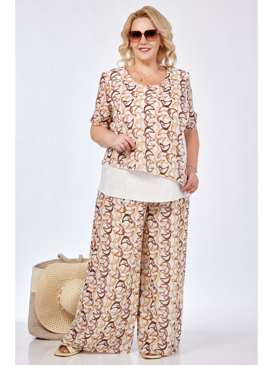 Костюм женский двухпредметный, свободного силуэта, состоит из шифоновой блузки и брюк.