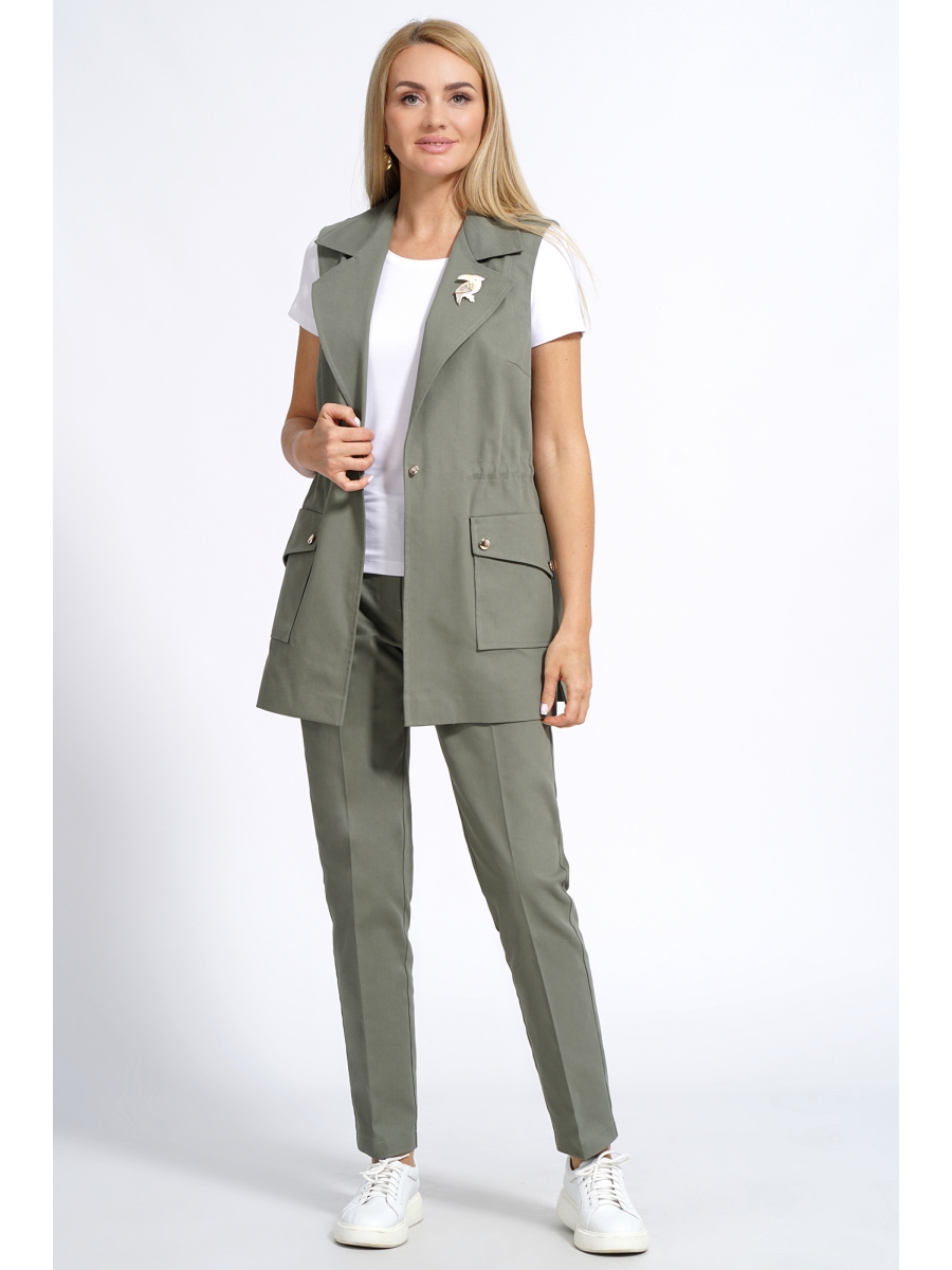 Комплект состоит из жакета, блузы и брюк.