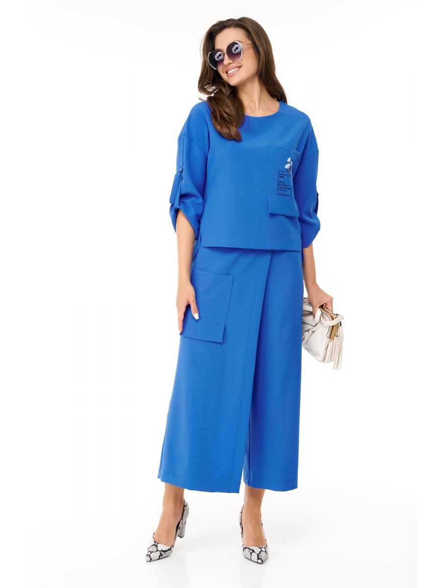 Очень стильный женский комплект, состоит юбки-брюк (кюлоты) и блузона.