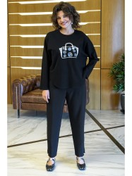 Блузон прямого, свободного силуэта, боковые части переда и спинки с цельнокроеными, длинными рукавами, с фигурной линией низа. С бейкой по горловине. Декорирован аппликацией «вышивка» и отделочными деталями со стразами.