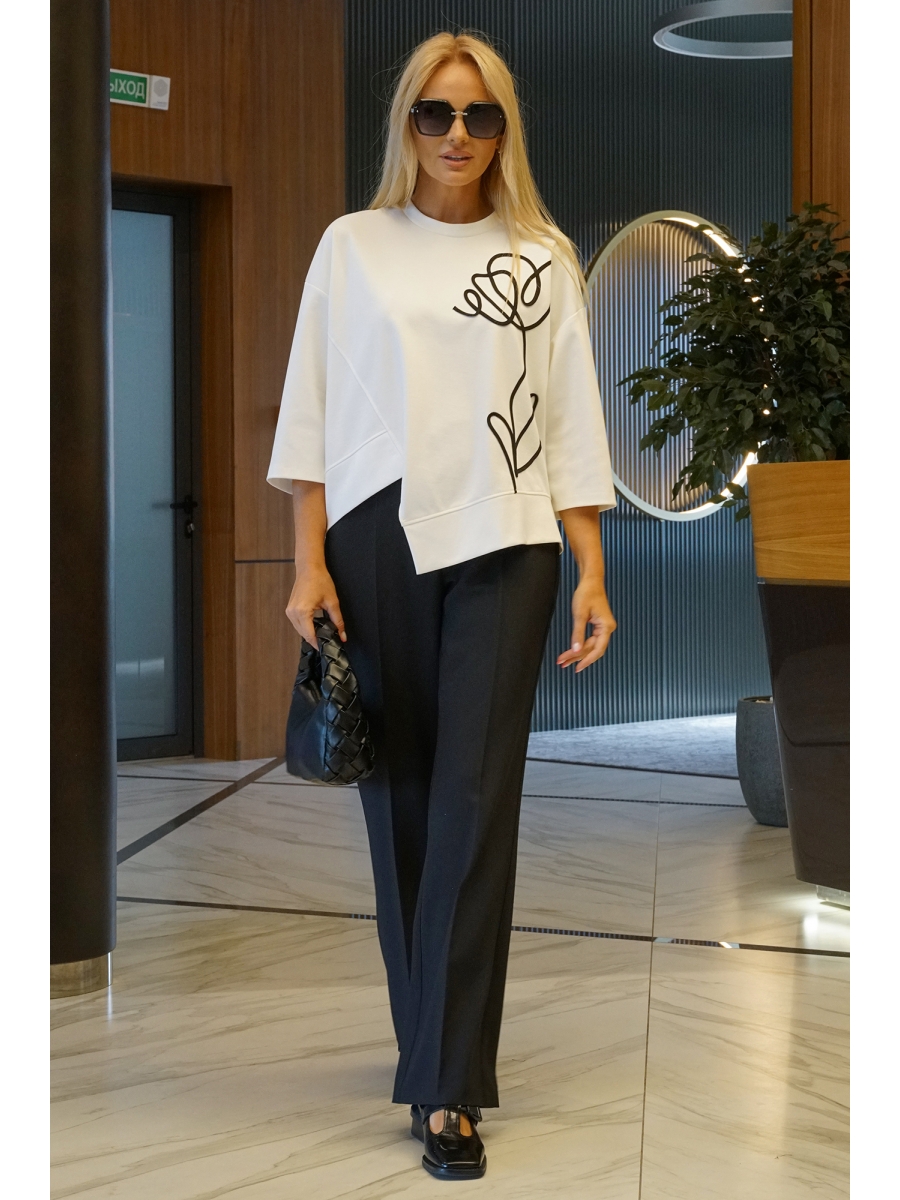 Брючный костюм 2427 молоко+черный, AlaniCollection – купить с доставкой в Нижнем Новгороде на nizhny-novgorod.belpodium.ru