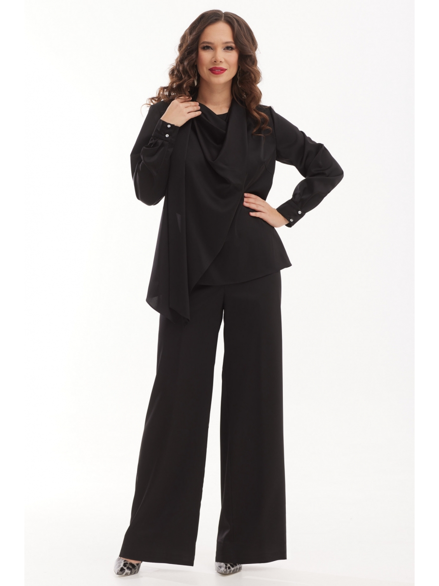 Элегантный комплект из блузы и брюк, выполненных из струящейся ткани средней плотности с атласным блеском.