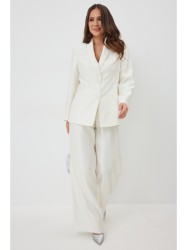 Выполнен из красивой гладкой костюмной ткани с легким отблеском.