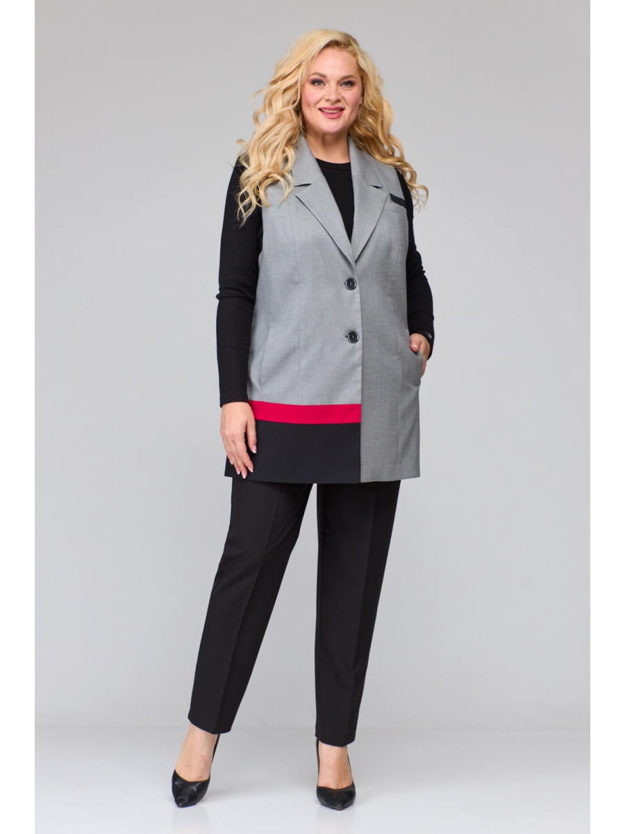 Комплект брючный 3-х предметный, изготовлен из костюмных тканей, состоит из жилета, брюк и джемпера.
